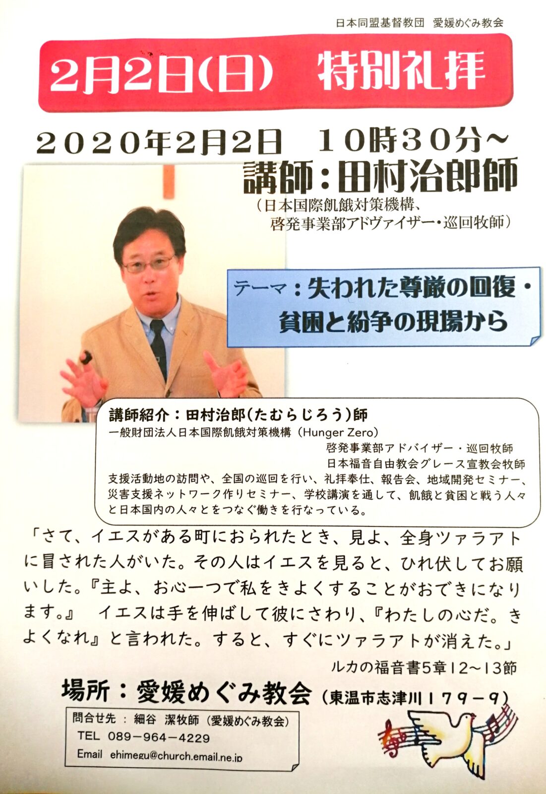 2月2日の礼拝では、田村治郎師を講師にお迎えし、「失われた尊厳の回復・貧困と紛争の現場から」と題してメッセージをしていただきます。